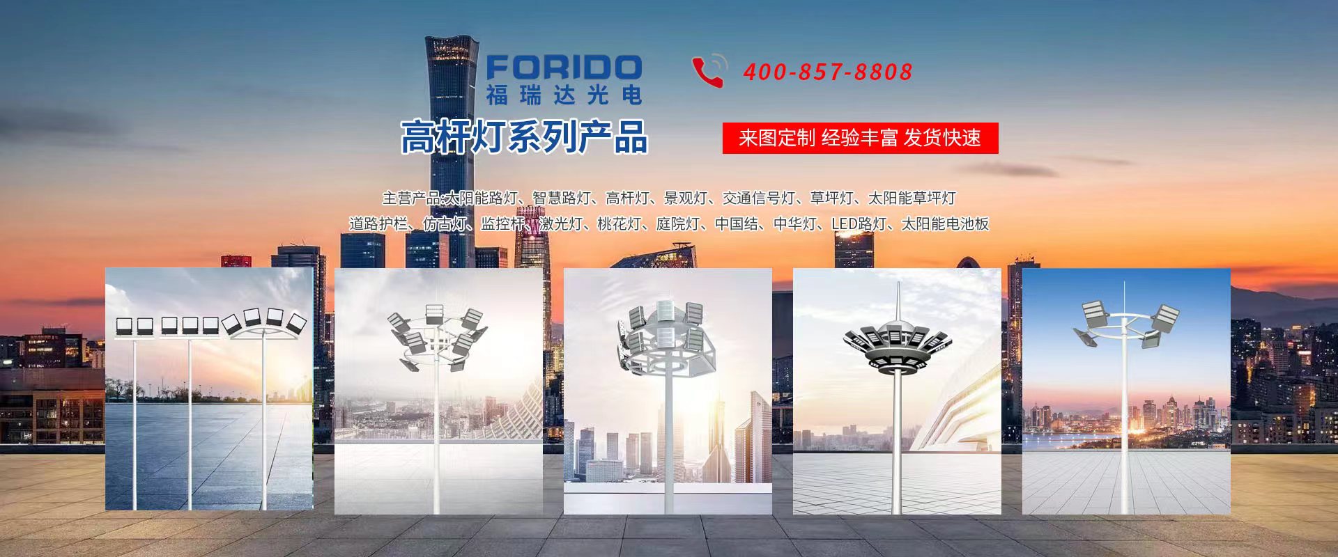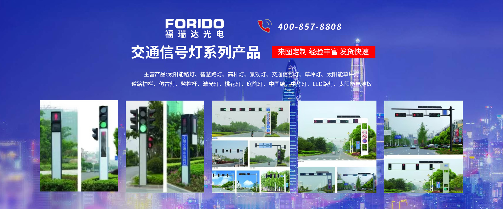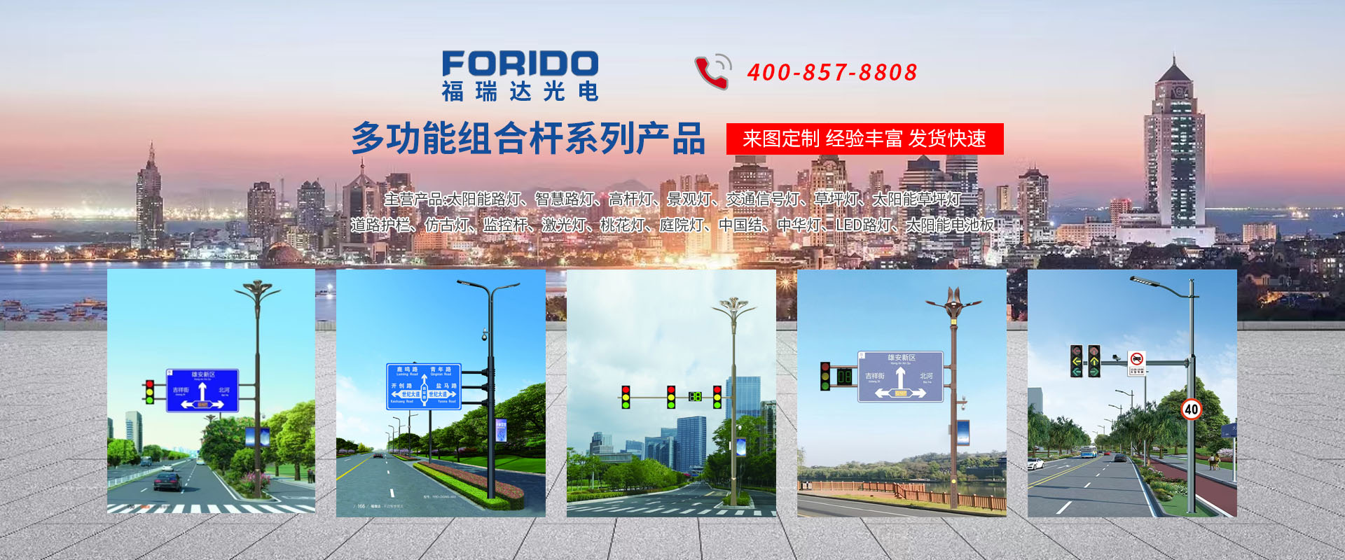 揚州福瑞達光電科技有限公司位于淮左名都?xì)v史文化名城、中國路燈制造基地?fù)P州市北郊菱塘工業(yè)園,公司占地面積76000平方米,注冊資金10518萬元,擁有高級技術(shù)嫻熟的員工280多人,擁有大型折彎機、激光切割、數(shù)控注塑機、壓鑄機、自動埋弧焊、氣焊、彩色粉末靜電噴塑等大型自動化設(shè)備,我公司是一家集設(shè)計、研發(fā)、生產(chǎn)、銷售、施工安裝服務(wù)為一體的戶外交通照明產(chǎn)品制造商,主要生產(chǎn)智慧路燈、太陽能路燈、LED路燈、高桿燈、景觀燈、交通信號燈、交通標(biāo)志牌、通信鐵塔、路跨鋼結(jié)構(gòu)、公交站臺、太陽能光伏組件、景點亮化、樓宇亮化工程的設(shè)計施工等。公司秉承開拓創(chuàng)新、銳意進取、精誠服務(wù)的企業(yè)精神,堅持以“誠信為本、技術(shù)為先、服務(wù)是金”的合作理念,我們憑借先進的制造工藝、優(yōu)質(zhì)的產(chǎn)品質(zhì)量、合理的市場價格和完善的售后服務(wù)贏得了廣闊的市場和客戶的信賴。  我公司已通過ISO9001質(zhì)量體系認(rèn)證、ISO14001環(huán)境管理體認(rèn)證,CQC產(chǎn)品認(rèn)證,中國節(jié)能產(chǎn)品認(rèn)證,通過“CCC”強制性產(chǎn)品認(rèn)證,具有市政總承包,照明,交安,設(shè)計等資質(zhì)···